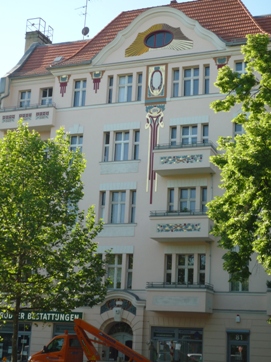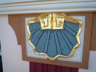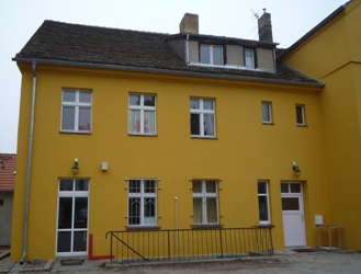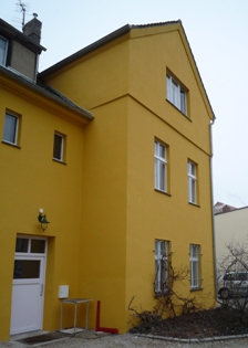 Die Fassade wurde farblich abgesetzt, dazu wurden die Fensterfaschen zwischen (weißem Rahmen) und der Fläche (beige) mit einen braunen Strich getrennt.
